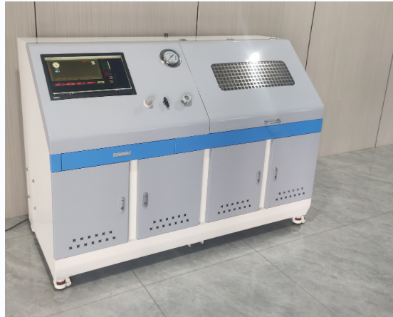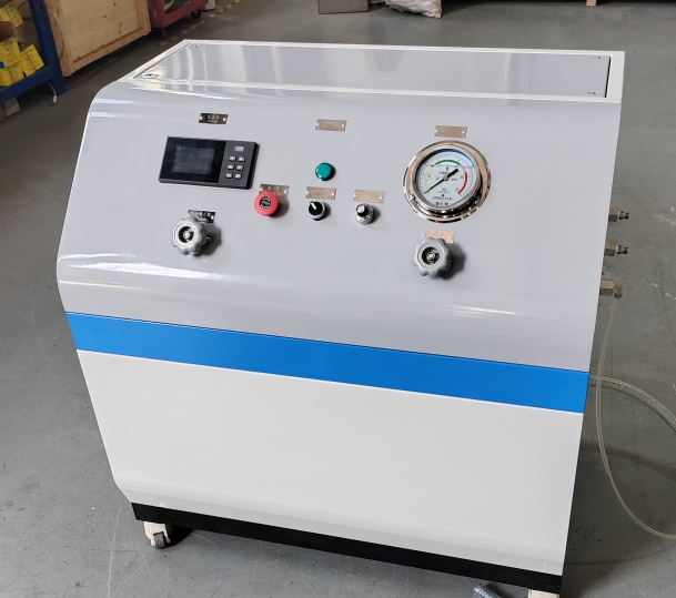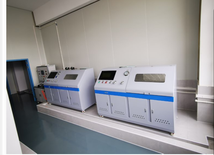 氣瓶內水壓試驗機(鋼瓶內測法水壓試驗機)壓力范圍0~45mpa,介質為靜止的清水,系統內置高壓泵,實現對壓力高的高壓打壓,高壓保壓,高壓泄壓的測試效果,具體的測試步驟為:注水→打壓→保壓→泄壓→輸出數據的過程。”是用于針對鋼瓶,氣瓶,非標纏繞瓶,軍工纏繞瓶的內水壓測試的范式,壓力范圍:0.1~45Mpa,介質為靜置的液體,采用思明特增壓泵完成對壓力的增壓,計算機壓力控制系統控制壓力和控制增壓速率。
